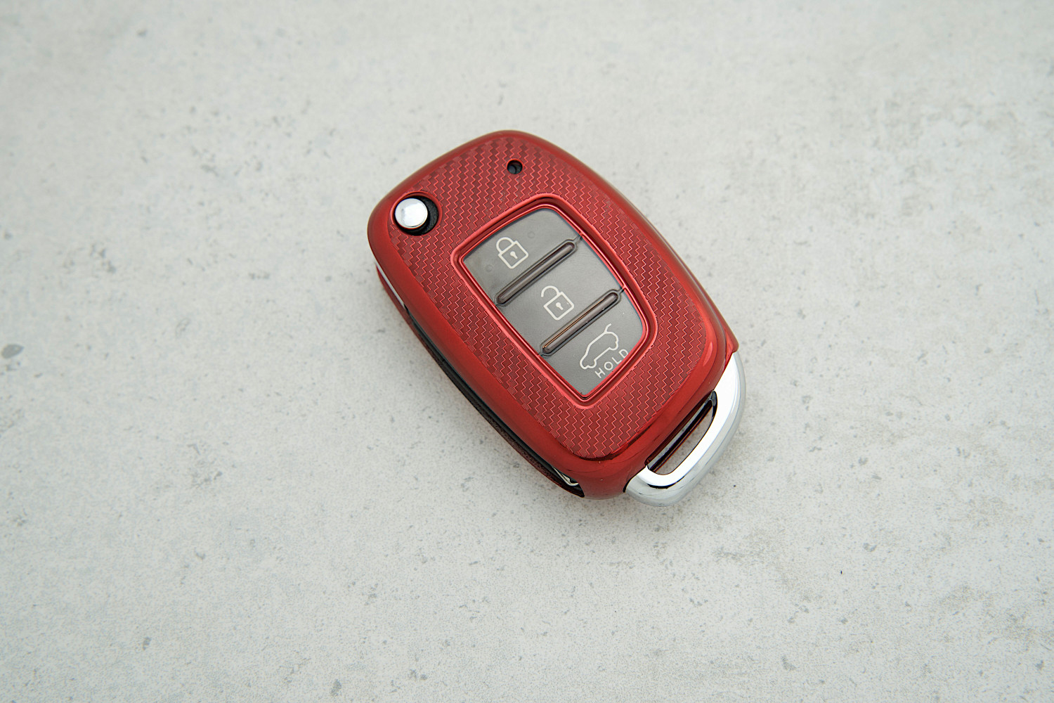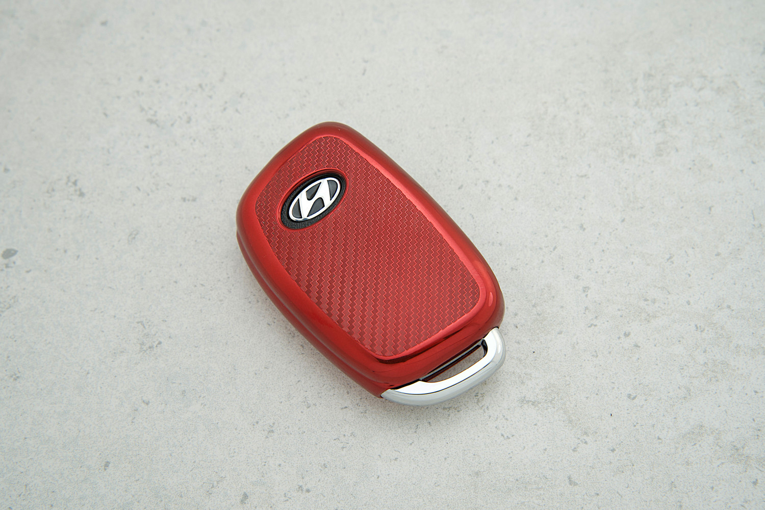 Чохол Hyundai Mistra/Elantra (3 кнопки) із червоного поліуретану та карбону забезпечує надійний захист, комфорт і стильний вигляд ключа щодня.