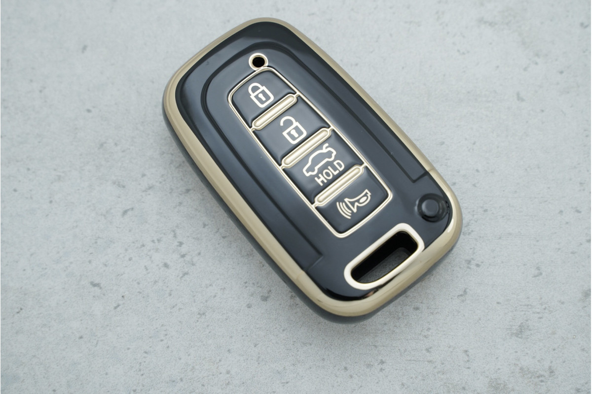 Чохол Hyundai / Kia 4 кнопки чорний-золото з поліуретану забезпечує захист і підкреслює стиль ключа щодня.