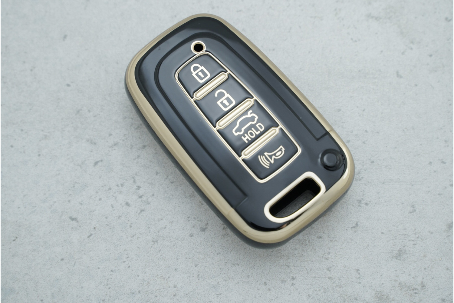Чохол для ключа Hyundai / Kia 4 кнопки чорний із золотом з поліуретану — практичний аксесуар для захисту ключа та надання йому стильного преміального вигляду, підходить для моделей Sonata, IX25, IX35.