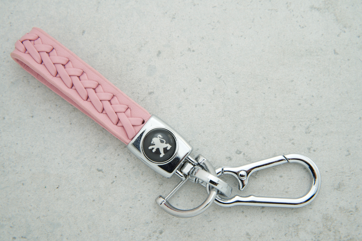 Брелок Peugeot плетений ремінець рожевий — яскравий та практичний аксесуар, створений для тих, хто хоче поєднати зручність користування ключами зі стильним акцентом у повсякденному житті.