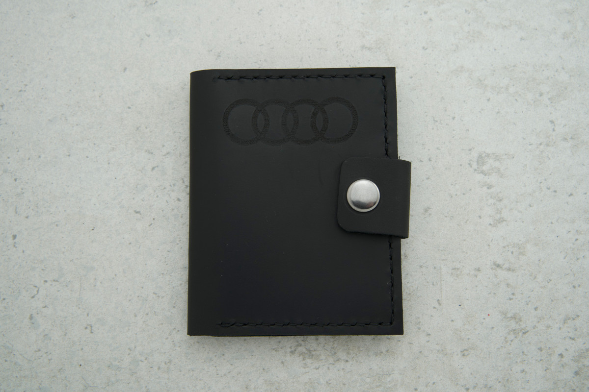 Автохолдер Audi із чорної шкіри — стильний і практичний аксесуар для зручного зберігання ключів у салоні, який захищає їх від подряпин і щоденного зносу.
