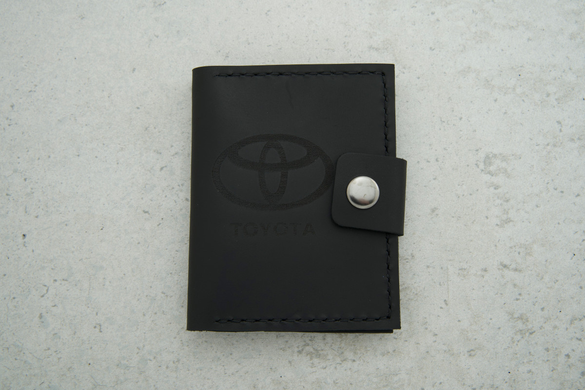 Автохолдер з логотипом Toyota із чорної шкіри — практичний і стильний аксесуар для зручного зберігання ключів у салоні автомобіля, який захищає їх від подряпин і втрати.