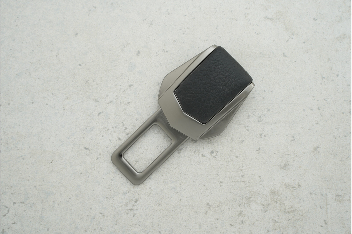 Заглушка ременя безпеки для Lexus у графітовому металі зі шкіряним елементом — компактний і стильний аксесуар, що дозволяє швидко блокувати сигнал нагадування про ремінь та елегантно доповнює салон авто.