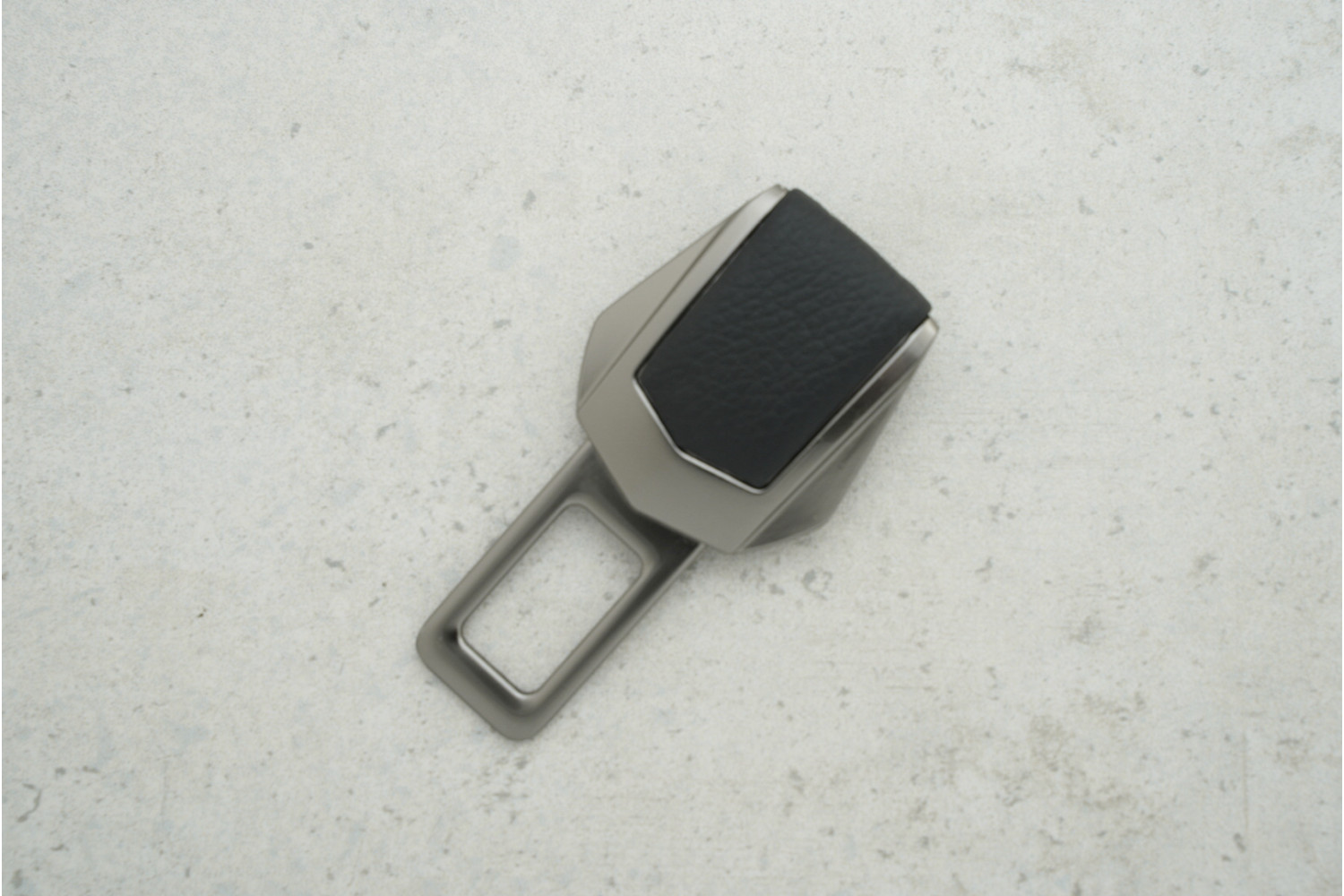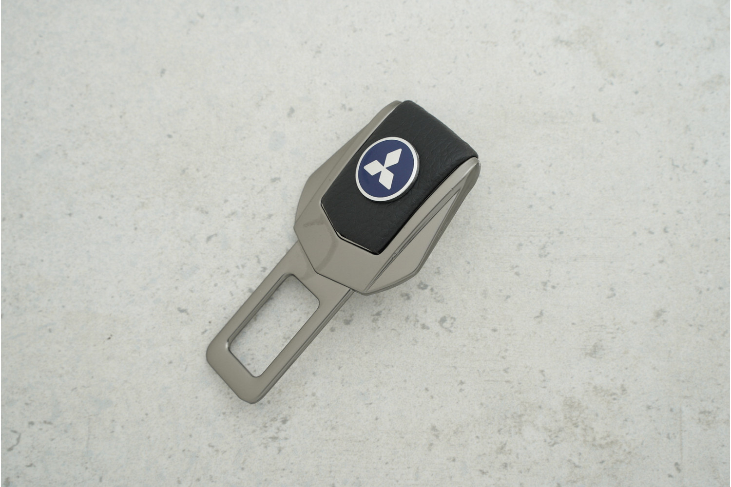 Заглушка ременя безпеки для Mitsubishi у графітовому металі з шкіряним елементом — компактний і практичний аксесуар, що дозволяє швидко блокувати сигнал нагадування про ремінь та підкреслює стиль салону.