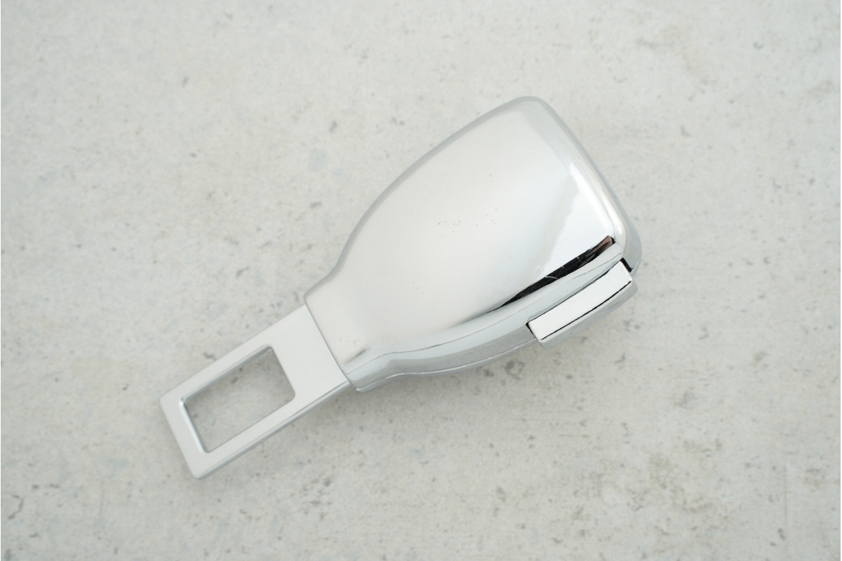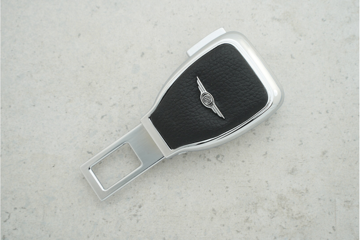 Заглушка ременя безпеки Chrysler з металу зі шкіряним елементом — практичний та стильний аксесуар, що дозволяє швидко блокувати сигнал нагадування про ремінь та естетично доповнює інтер’єр автомобіля.
