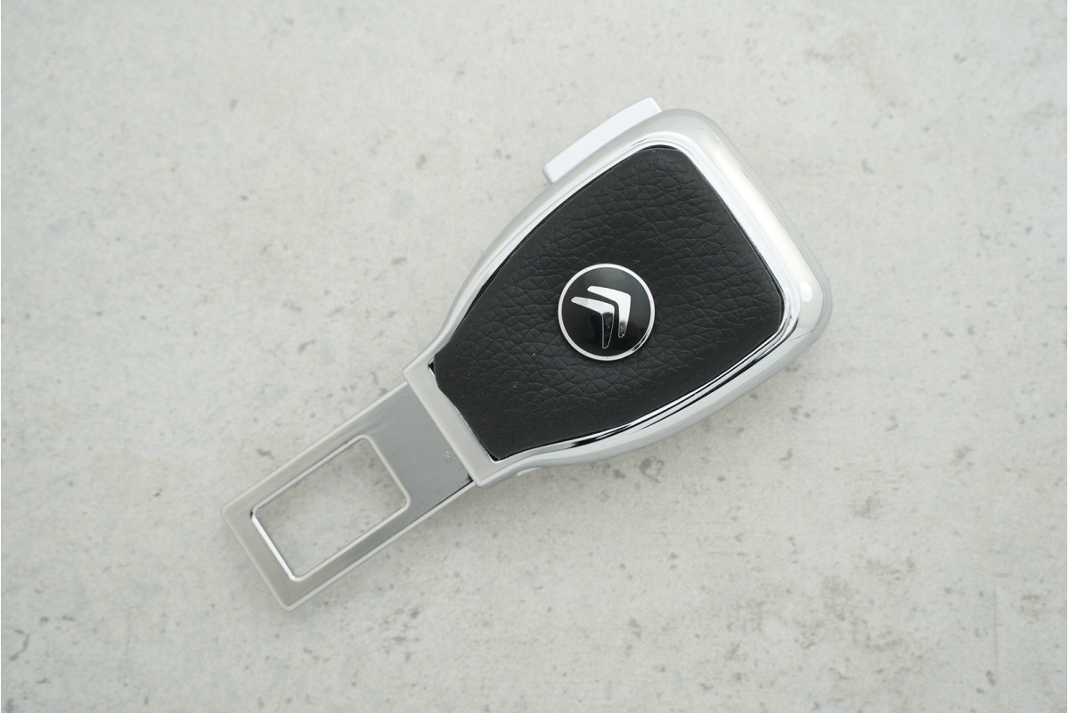 Заглушка ременя безпеки CITROEN із металу та шкіряного елементу — компактний і стильний аксесуар, який швидко блокує сигнал нагадування про ремінь і додає елегантності салону автомобіля.