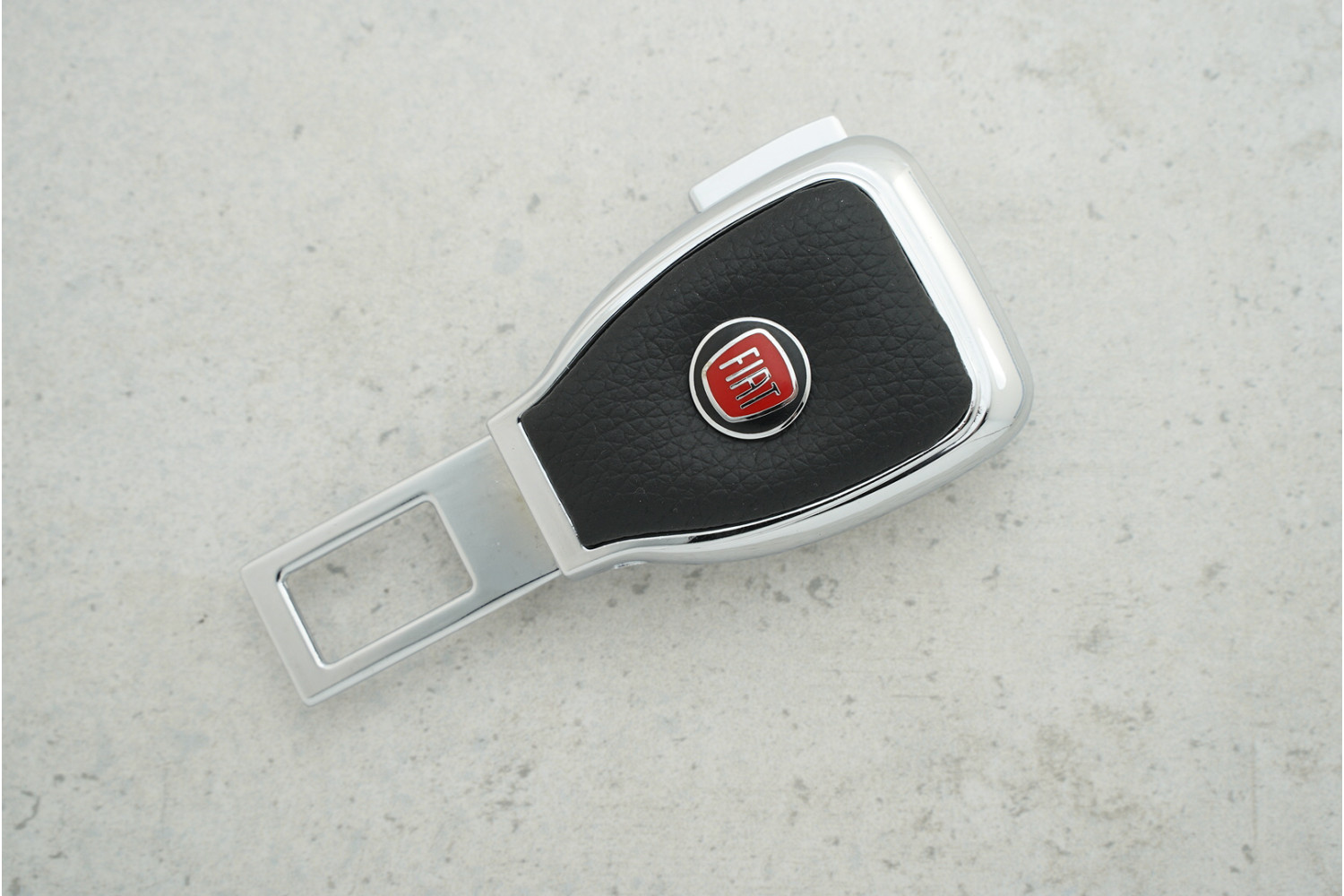 Заглушка ременя безпеки FIAT з металу зі шкіряним елементом — практичний та стильний аксесуар, який швидко блокує сигнал нагадування про ремінь і гармонійно доповнює інтер’єр автомобіля.