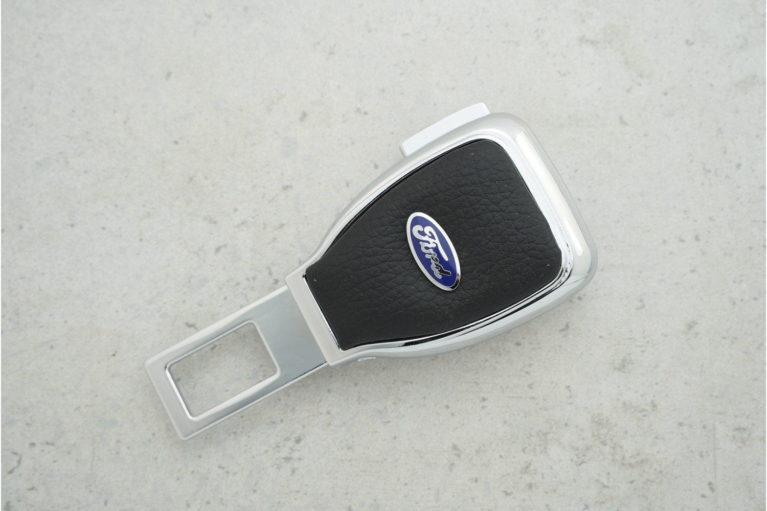 Заглушка ременя безпеки FORD з металу та шкіряним елементом — компактний і практичний аксесуар, що допомагає швидко відключити сигнал нагадування про ремінь і водночас додає інтер’єру авто стильного вигляду.