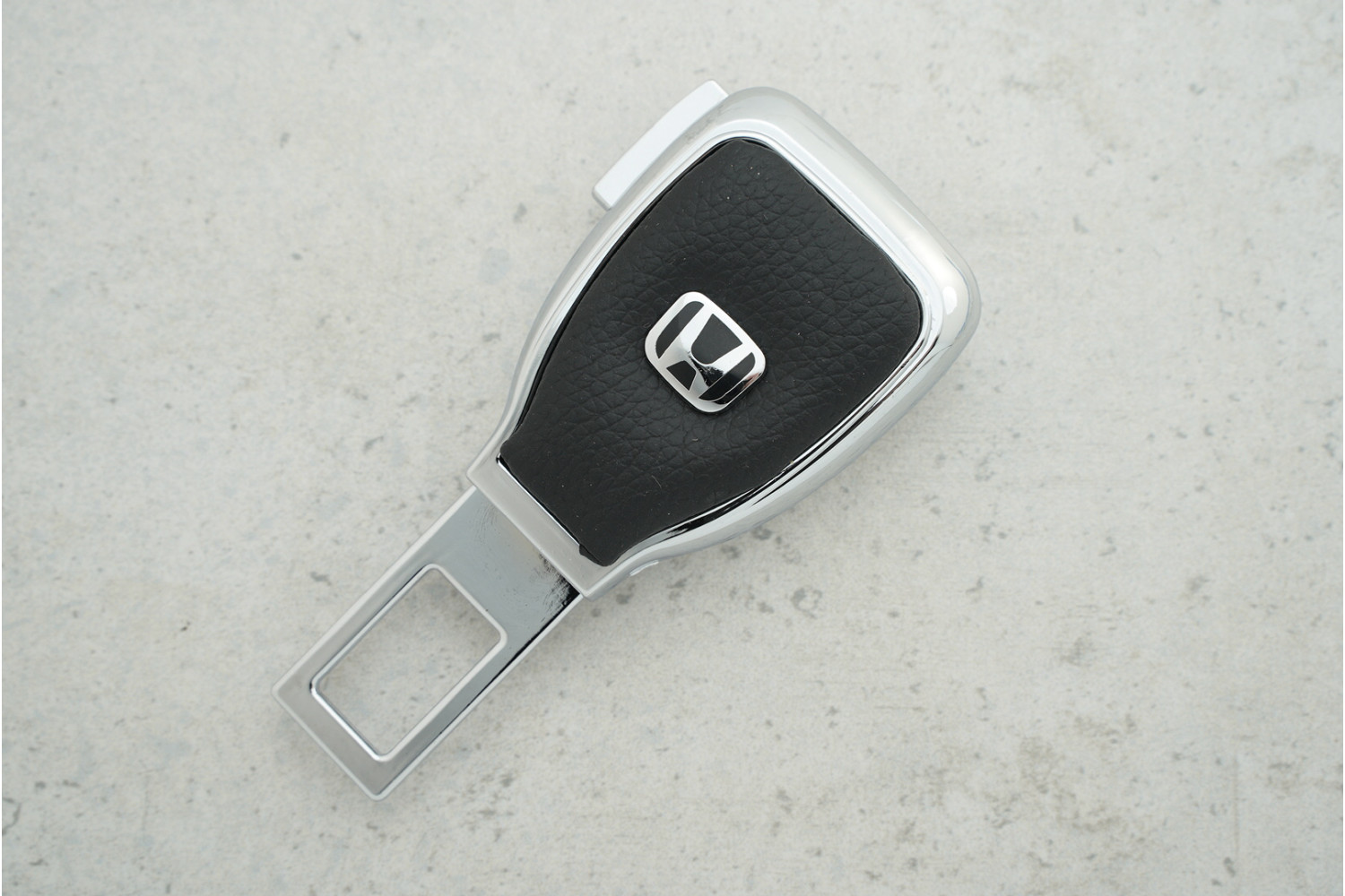 Заглушка ременя безпеки HONDA з металевим корпусом та шкіряним елементом — практичний аксесуар для швидкого блокування сигналу нагадування про ремінь, що водночас додає стильного акценту інтер’єру автомобіля.