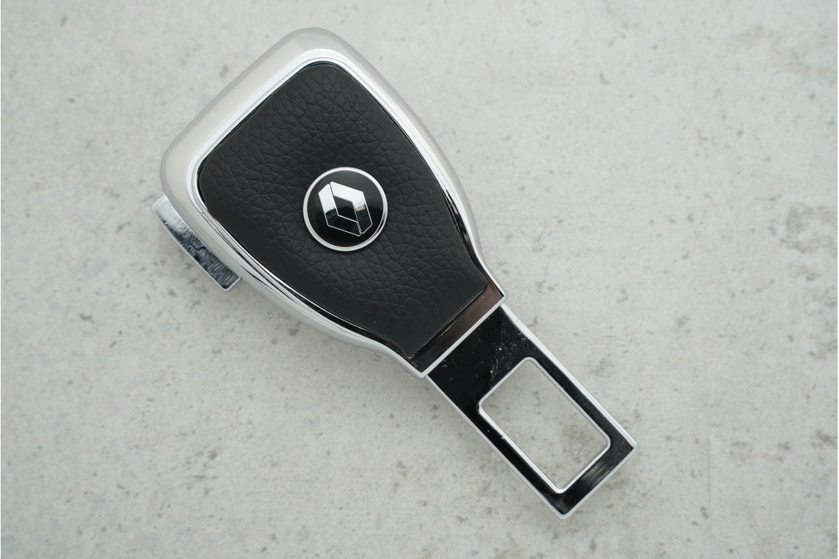 Заглушка ременя безпеки з логотипом Renault у виконанні «метал + шкіра» — це стильний аксесуар, який поєднує практичну функцію відключення сигналу нагадування з елегантним оформленням у дусі французького автобренду.