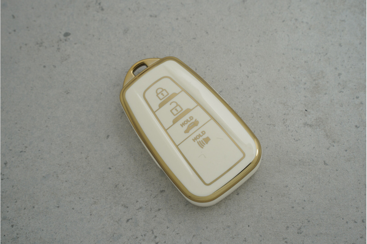 Чохол для ключа Toyota 3+1 кнопки, білий поліуретан — практичний захисний аксесуар, що допомагає зберегти ключ у відмінному стані та забезпечує комфорт у щоденному користуванні.
