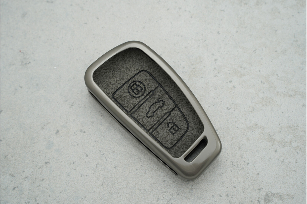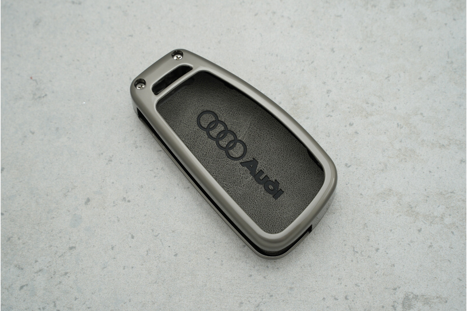Чохол Audi Premium 3 кнопки сірий з металевими, екошкіряними та поліуретановими вставками — міцний та стильний захист для ключа автомобіля.