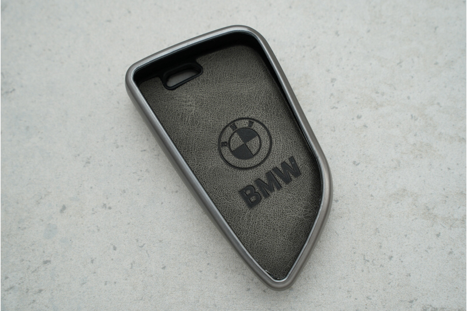 Чохол BMW 3+1 кнопки сірий з екошкірою та поліуретаном — стильний та практичний захист для ключа BMW, який поєднує міцність і елегантний вигляд.