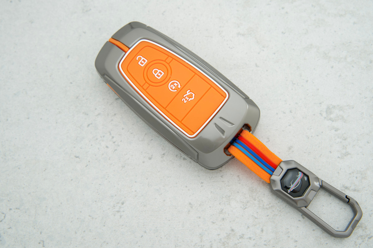 Чохол Ford Smart 3+1 кнопки з металу та помаранчевого силікону — практичний і яскравий захист для ключа Ford, створений для активного щоденного використання.