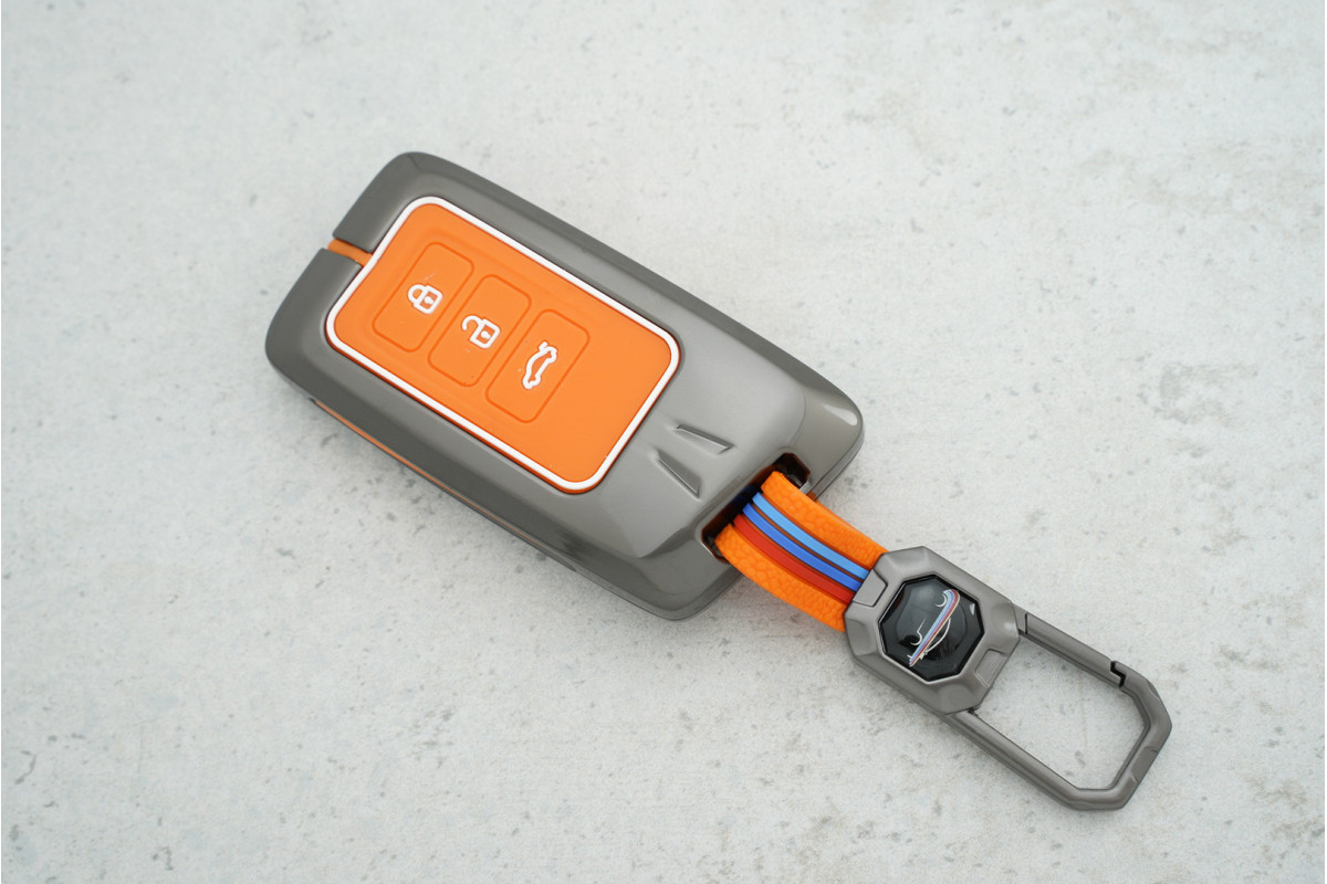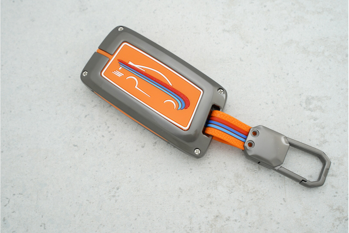 • Стильний дизайн: Помаранчевий силікон у поєднанні з металевими вставками надає ключу сучасного та яскравого вигляду.