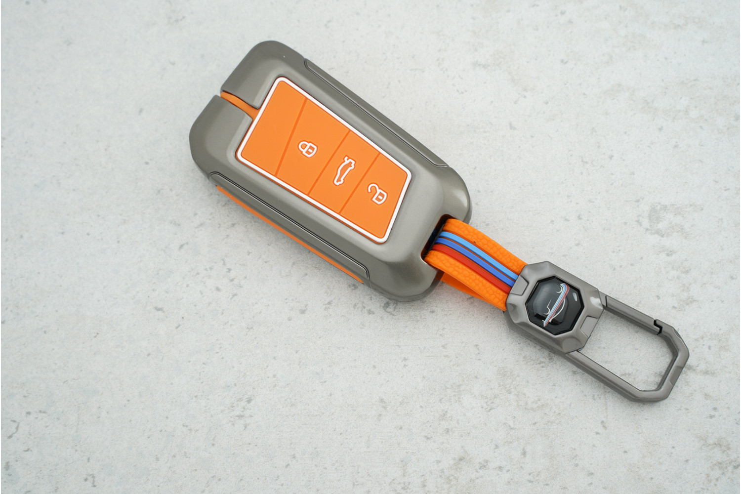 Чохол VW 3 кнопки метал+силікон оранжевий — стильний та практичний захист для ключів VW Passat B8 та Skoda A7, який поєднує міцність і яскравий сучасний вигляд.