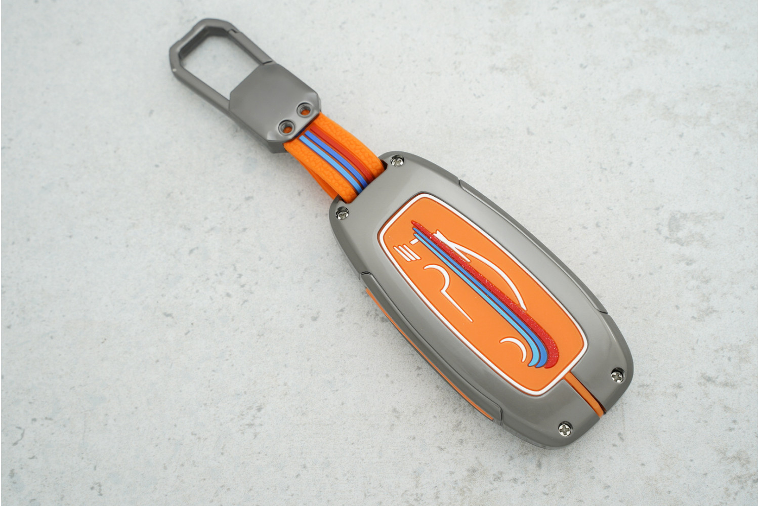 • Яскравий дизайн: Оранжевий колір додає стилю й помітності, вигідно підкреслюючи сучасний вигляд ключа.