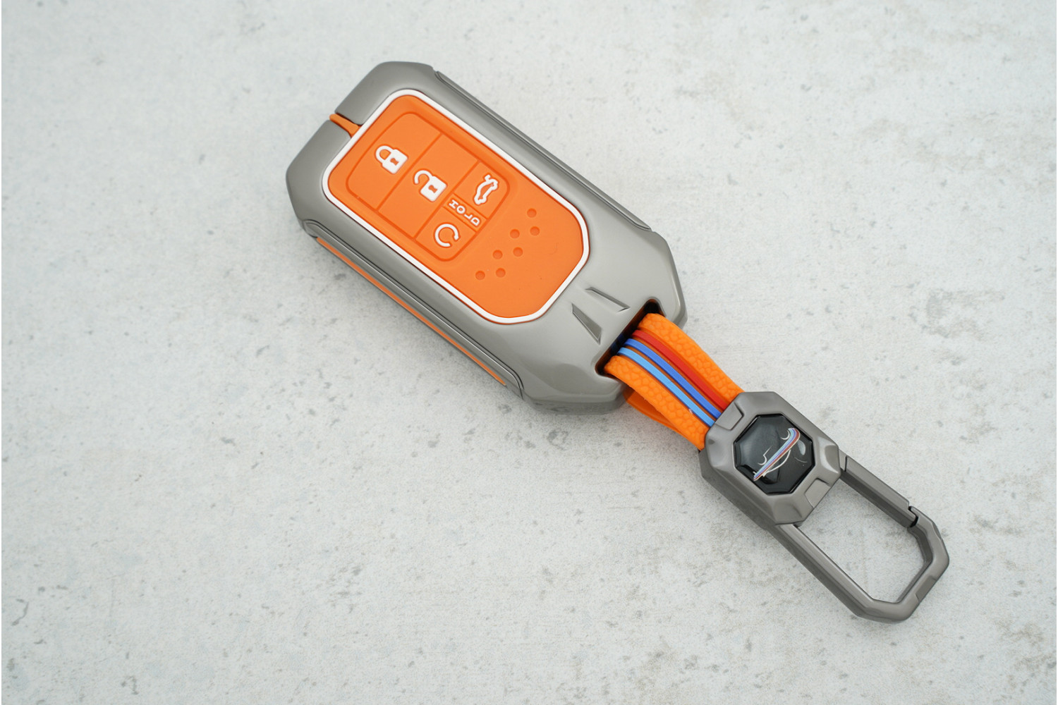 Чохол Honda метал + силікон помаранчевий на 4 кнопки для Civic, Accord, Jazz, CRV, HRV, Odyssey — міцний та стильний захист для ключа, який поєднує надійність металевої рамки та гнучкість силікону, забезпечуючи довговічність і комфорт у щоденному використанні.