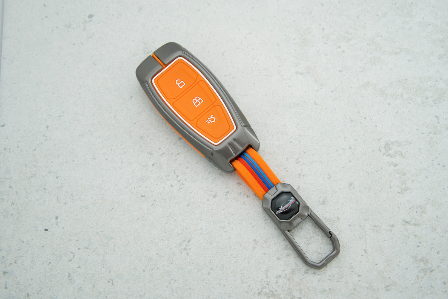 Чохол Ford 3 кнопки помаранчевий з металу та силікону для моделей Escape, Flex, Explorer та Taurus — міцний та яскравий захист ключа, що поєднує стильний дизайн і надійність матеріалів.