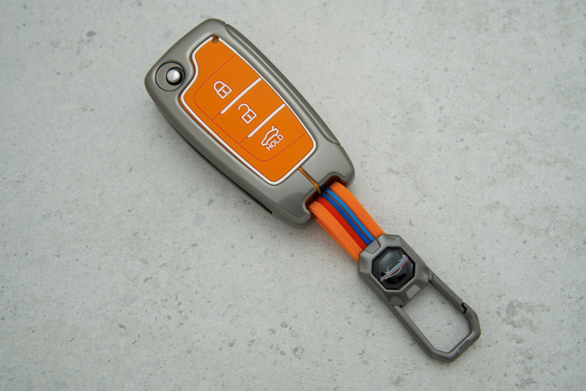 Чохол Hyundai помаранчевий метал + силікон на 3 кнопки для Solaris забезпечує надійний захист ключа та додає йому виразного стилю у щоденному використанні.