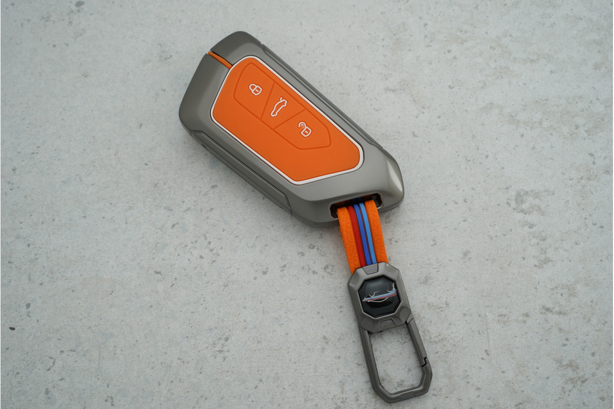 Чохол Skoda/VW метал+силікон помаранчевий для моделей Golf 8 3 кнопки — яскравий та міцний захист ключа, що поєднує сучасний стиль і надійність матеріалів.