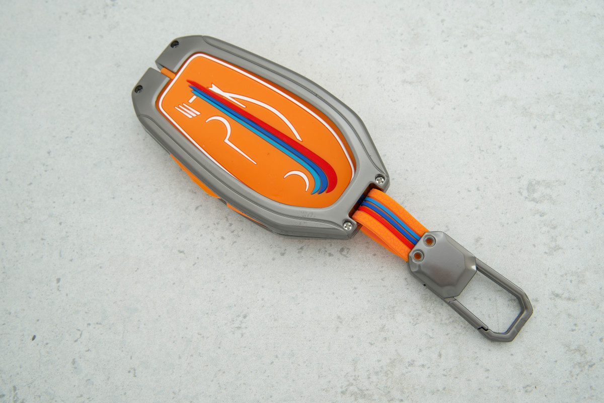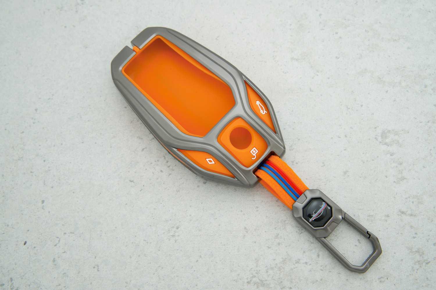 Чохол BMW метал+силікон помаранчевий забезпечує довговічний захист ключа з дисплеєм та підкреслює його стиль щодня.