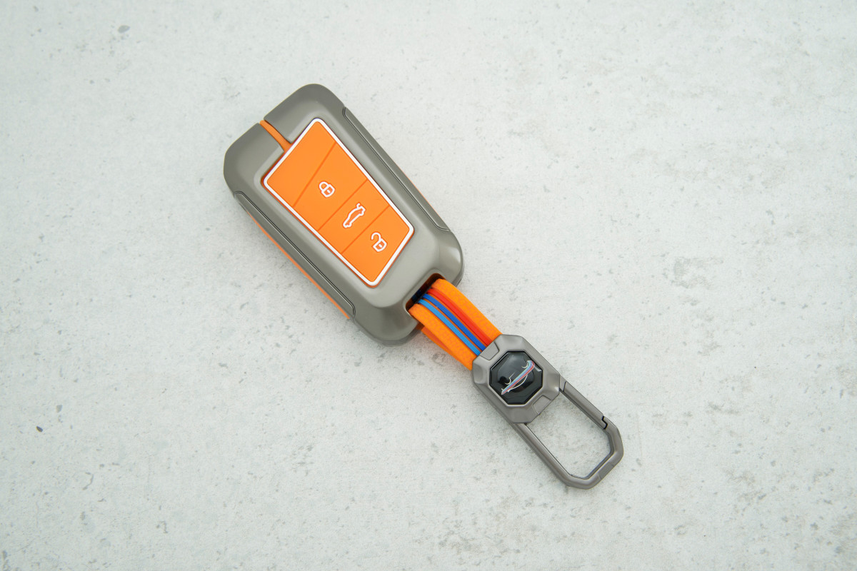 Чохол Skoda/VW 3 кнопки помаранчевий з металу та силікону — міцний та яскравий захист ключа, який поєднує сучасний дизайн і надійність матеріалів.