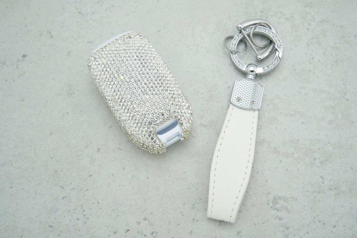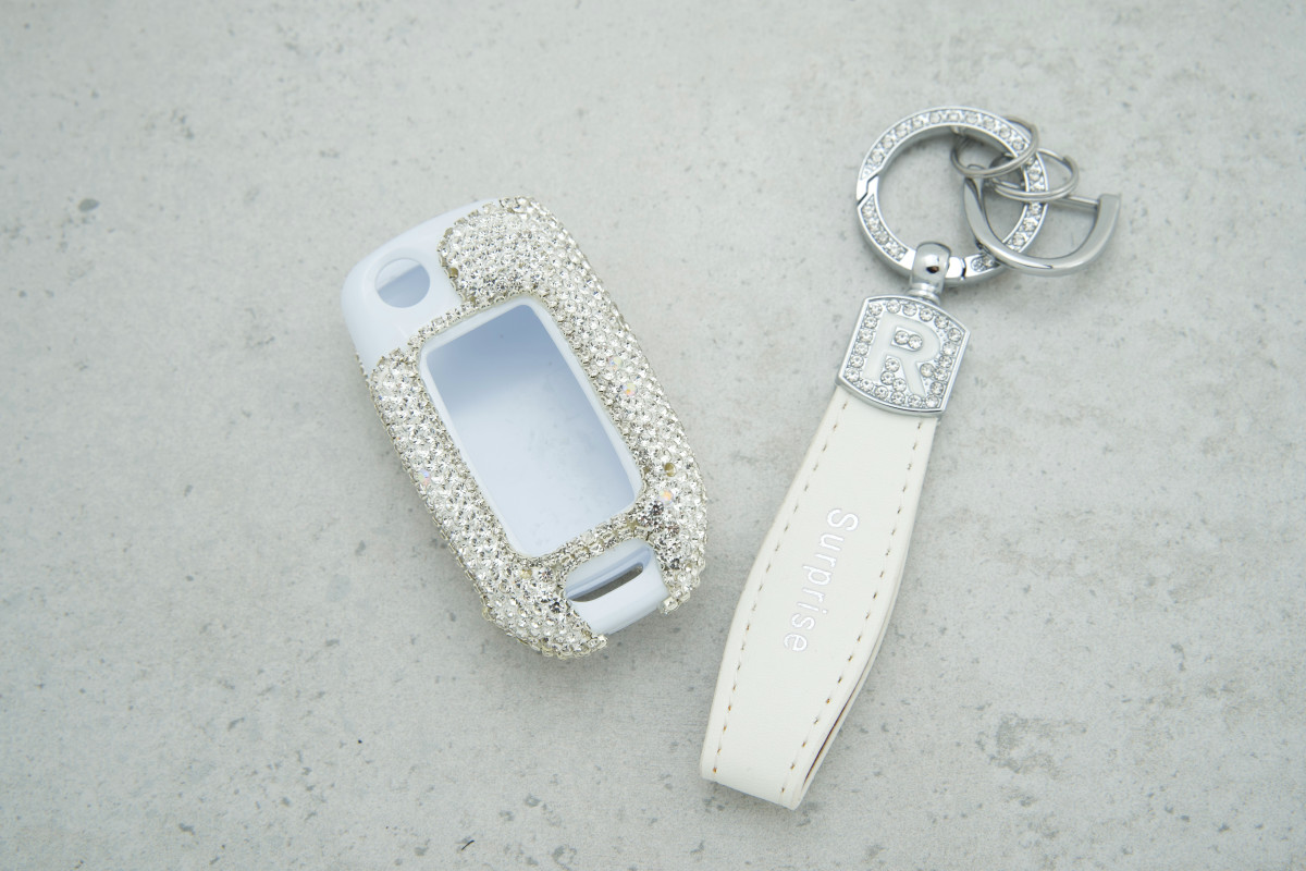 Чохол на автопульт VW / Skoda 3КН, маленькі стрази, білий, універсальний — практичний та стильний аксесуар, який захищає ключ від подряпин, пилу та зносу, надаючи йому акуратного та елегантного вигляду.