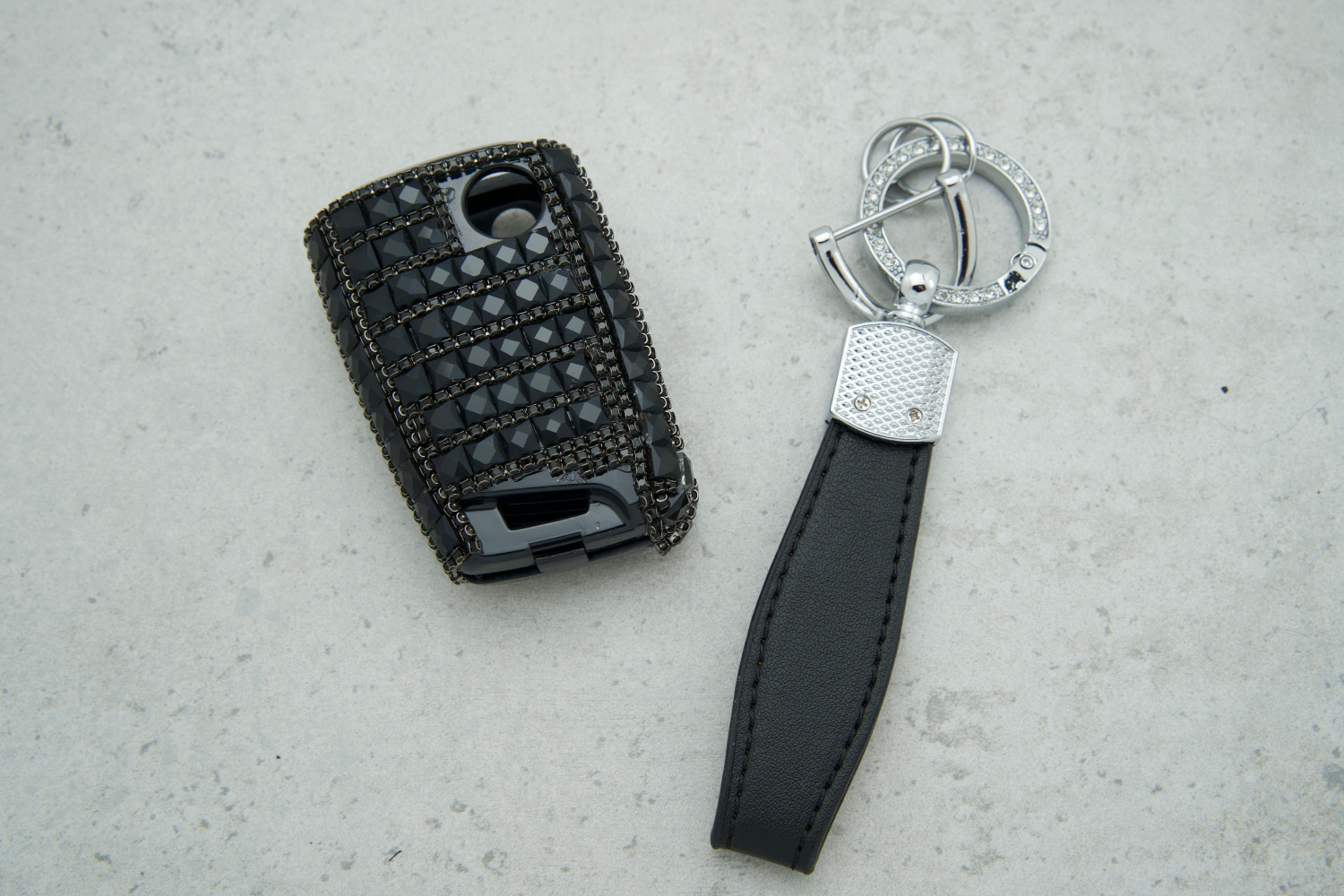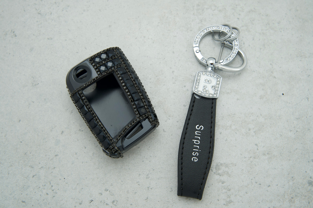 • Стильний дизайн: Великі чорні стрази надають ключу розкішного та сучасного вигляду, виділяючи його серед інших аксесуарів.