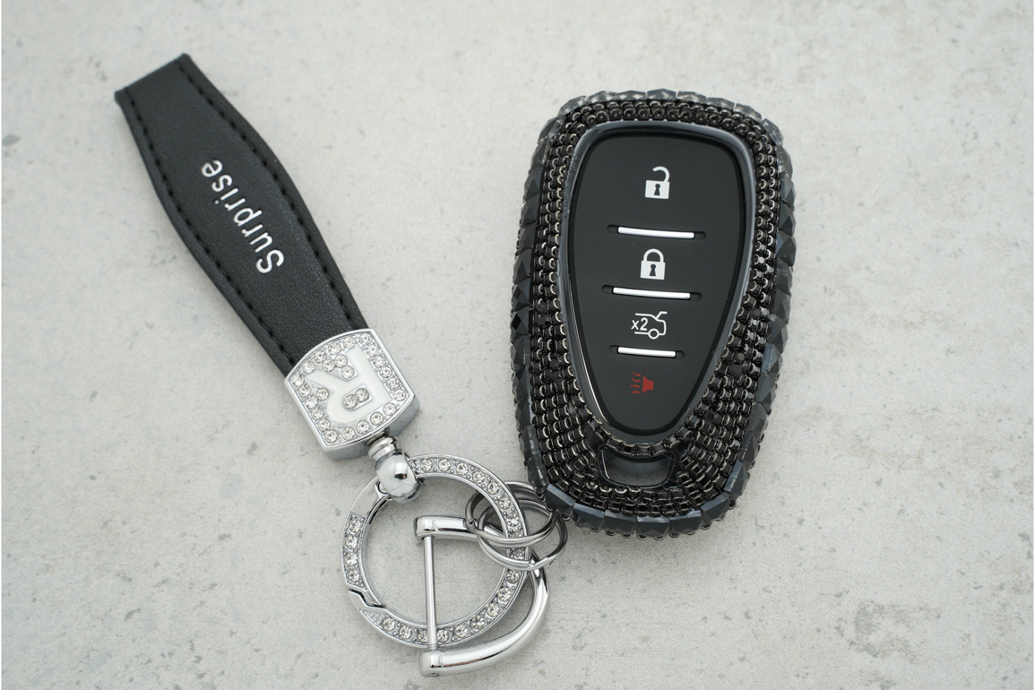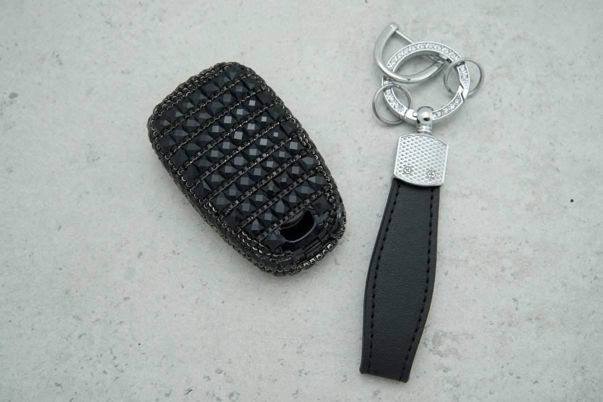 • Стильний дизайн: Великі чорні стрази надають ключу елегантного та помітного вигляду, роблячи його сучасним аксесуаром.