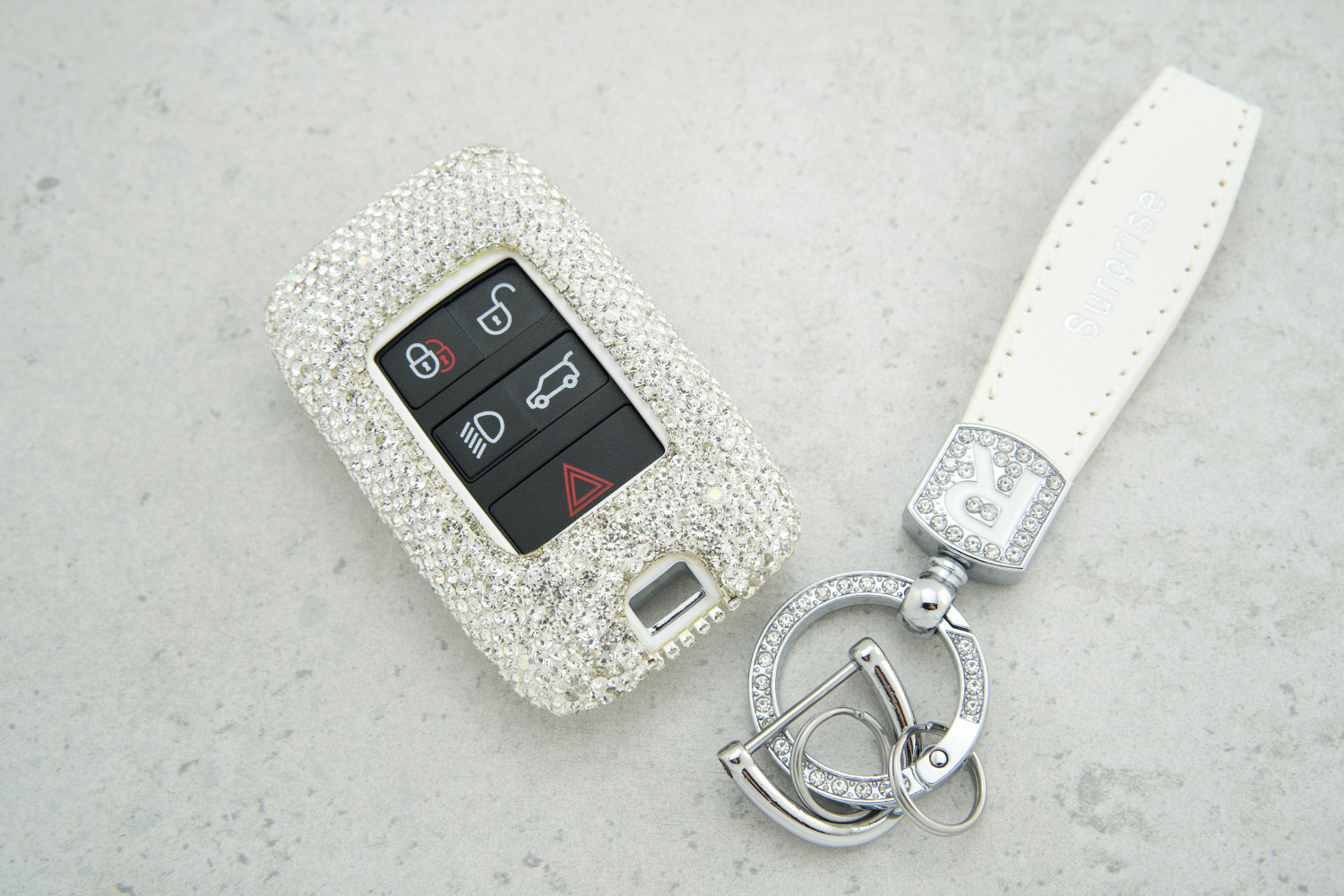 Чохол Land Rover Smart Freelander 3КН з малими білими стразами — витончений та надійний захист для ключа, який поєднує стиль і практичність у повсякденному використанні.