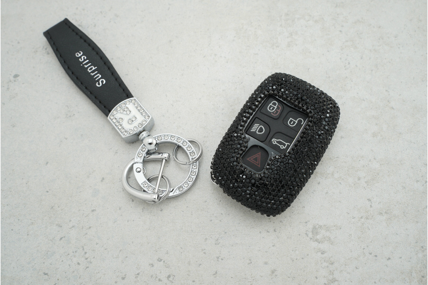 • Стильний дизайн: Маленькі чорні стрази надають ключу елегантного та помітного вигляду, роблячи його модним аксесуаром.