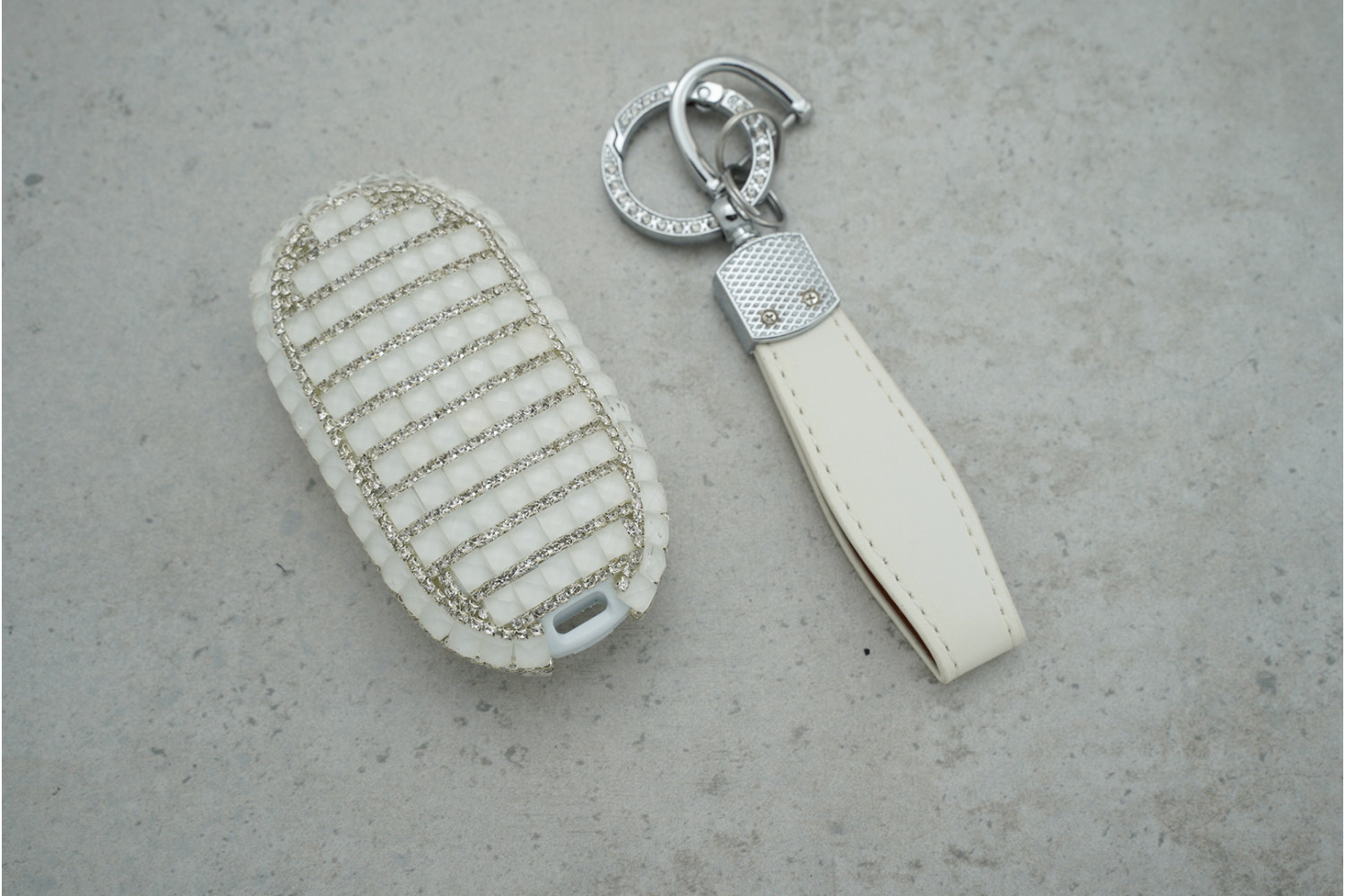 Чохол на автопульт Mercedes 3КН, великі стрази, білий (Smart S400L, S450L, S500L) — елегантний та практичний аксесуар, який захищає ключ від подряпин, пилу та зносу, одночасно надаючи йому розкішного вигляду.