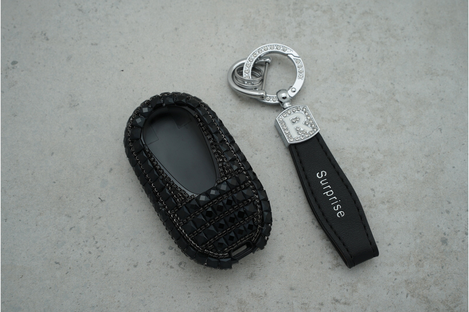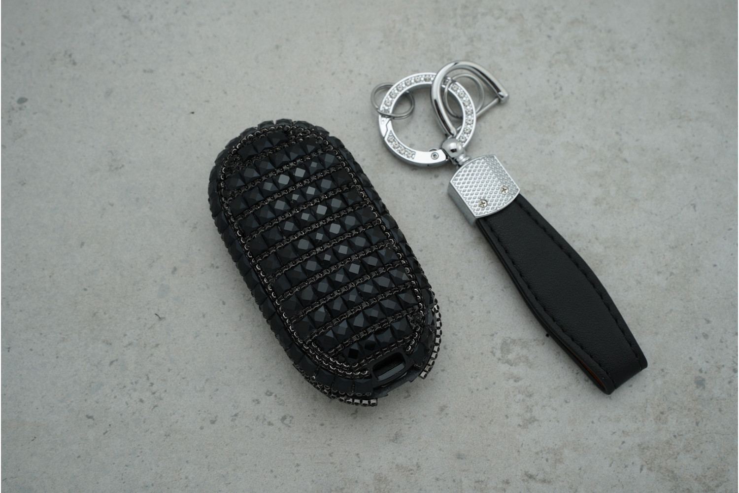 Стильний дизайн — чорний колір із великими блискучими стразами підкреслює елегантність і індивідуальність ключа.