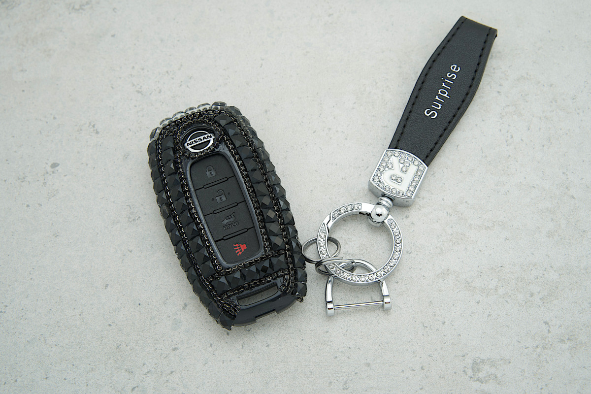 Чохол на автопульт Nissan 2/3/3+1КН (Pathfinder, Rogue, Kicks KR5TXPZ1), великі стрази, чорний — практичний і стильний аксесуар, який захищає ключ від подряпин, пилу та зносу, одночасно надаючи йому елегантного вигляду.