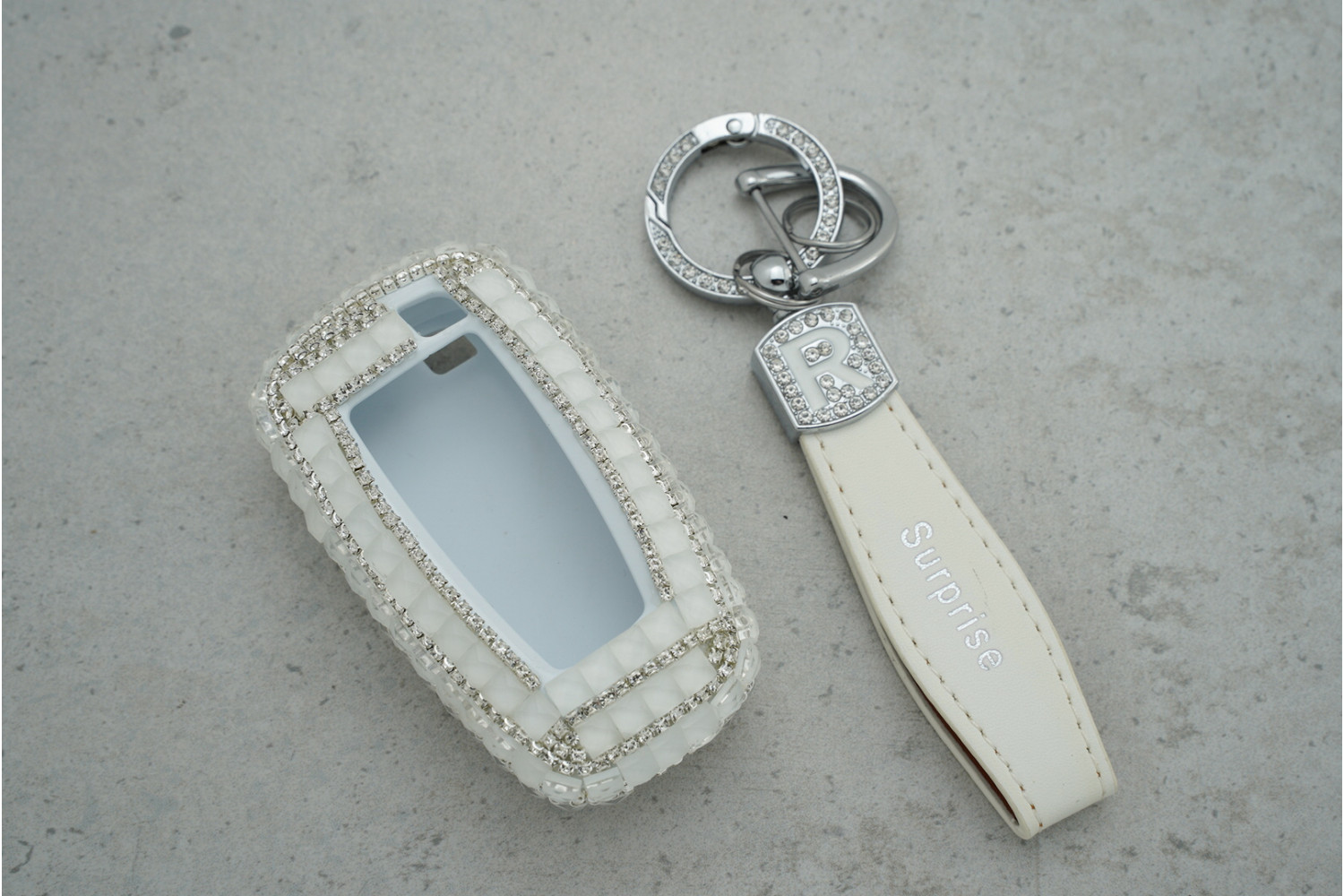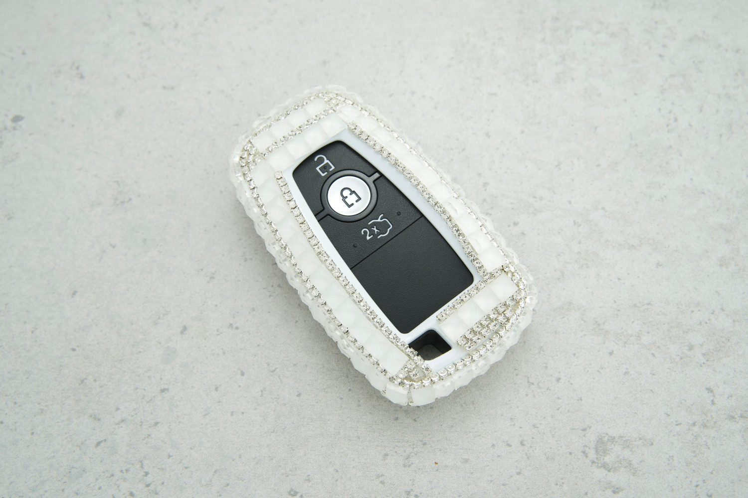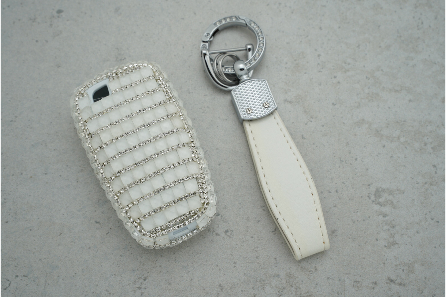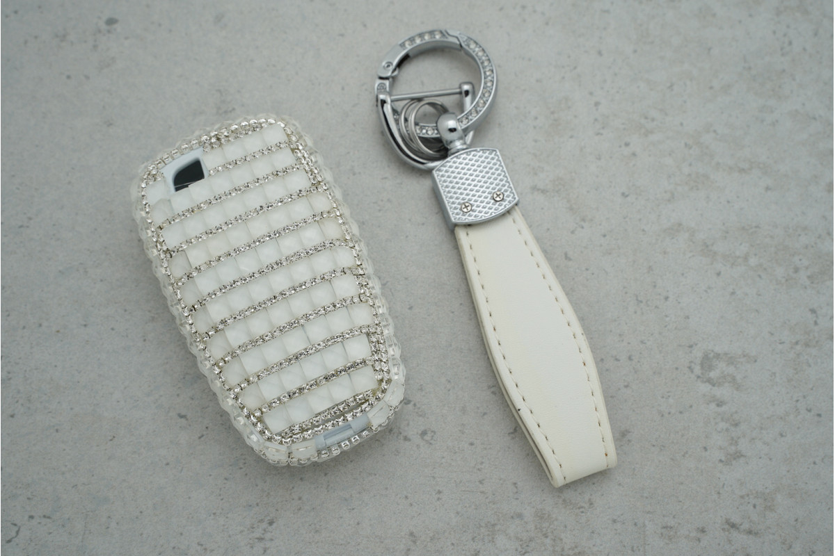 Стильний дизайн — білий колір із блискучими великими стразами робить ключ виразним та сучасним.