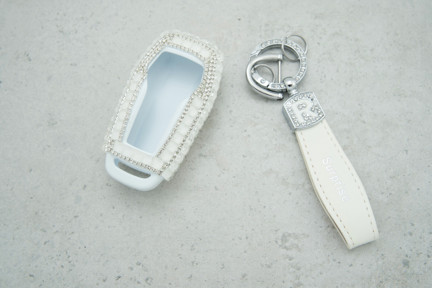 • Стильний дизайн: Великі білі стрази надають ключу виразного, розкішного та сучасного вигляду.