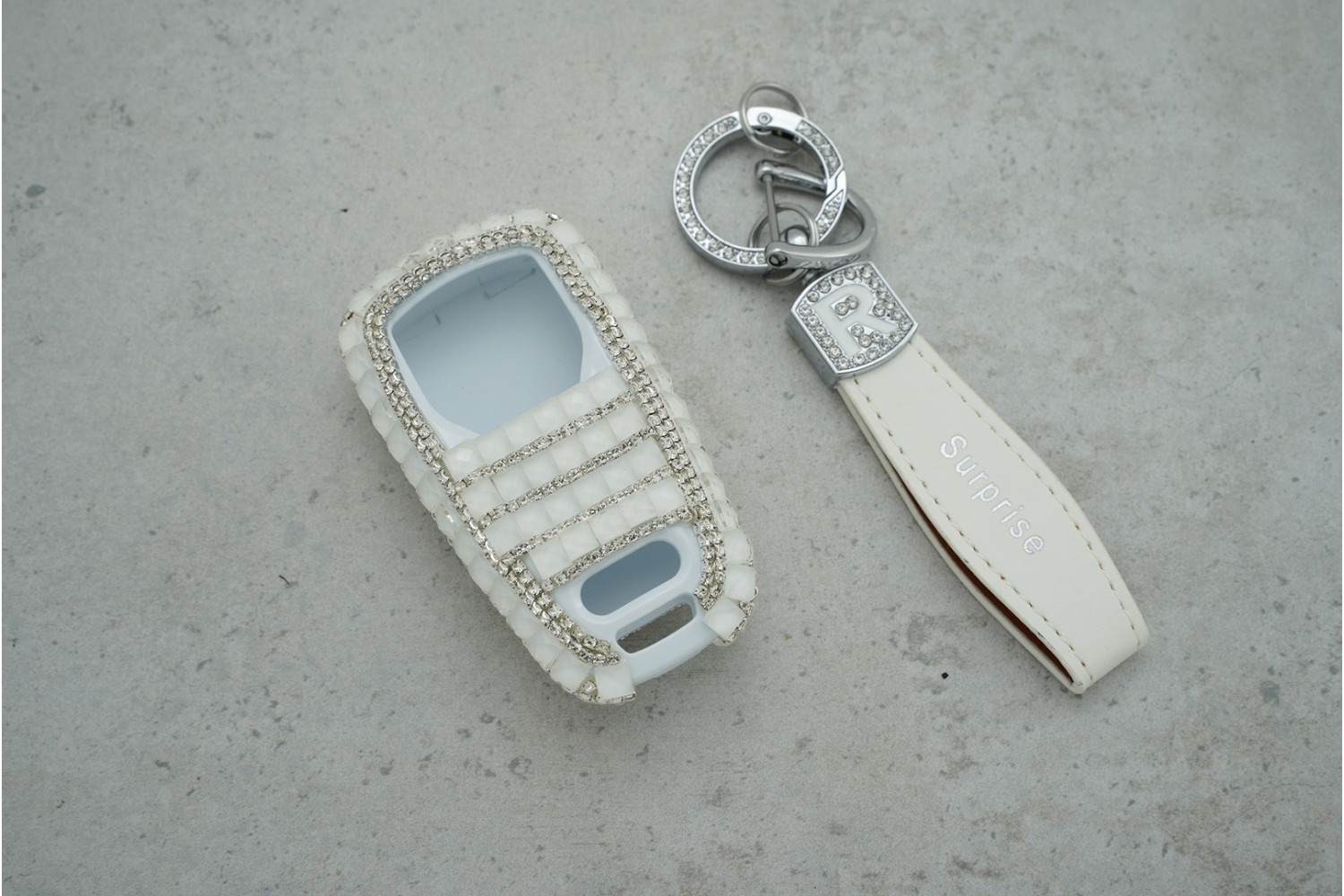 Чохол на автопульт Audi 3КН, великі стрази, білий (Q7) — елегантний та практичний аксесуар, який захищає ключ від подряпин, пилу та зносу, надаючи йому стильного вигляду.