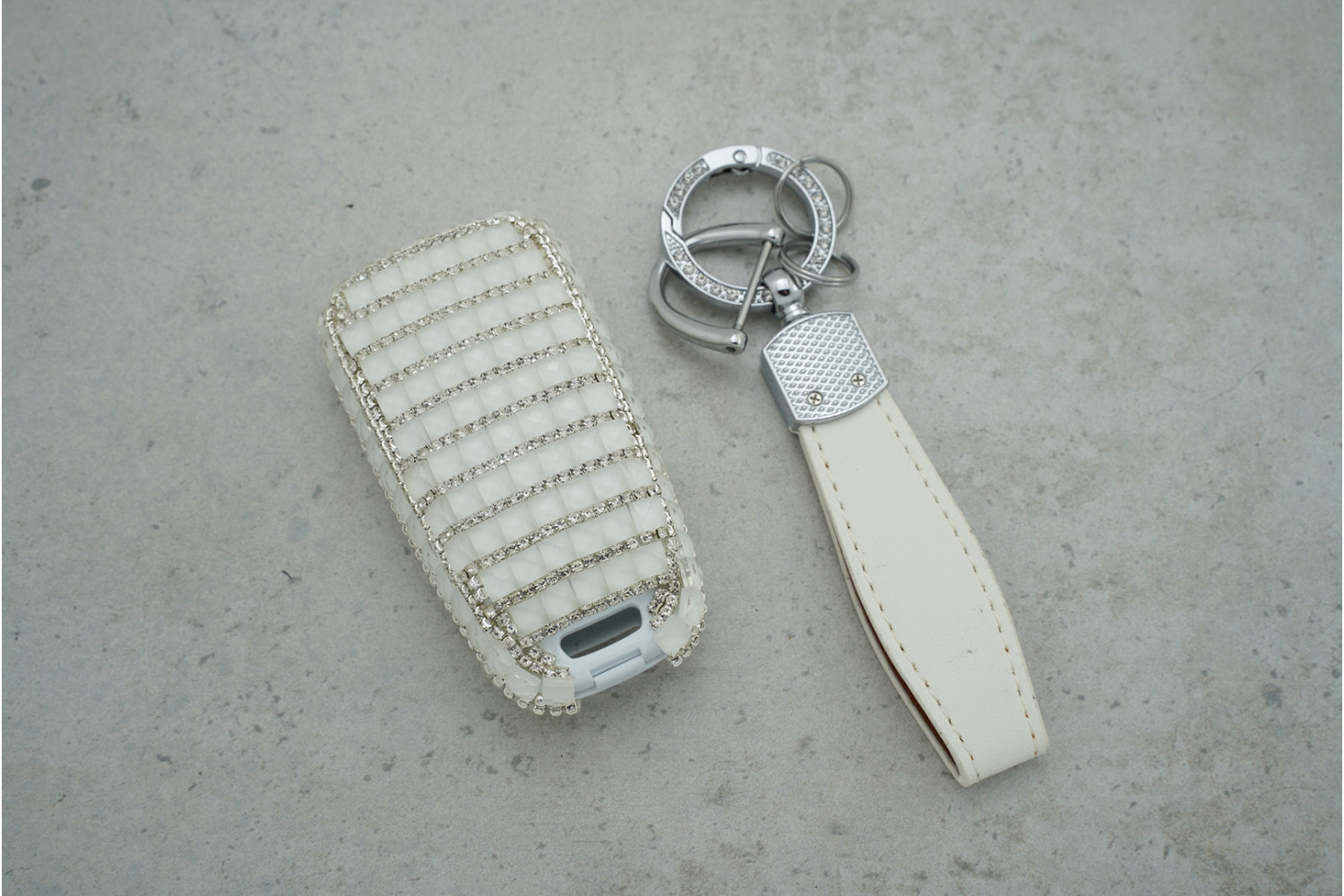 Стильний дизайн — білий колір із великими стразами додає елегантності та індивідуальності ключу.