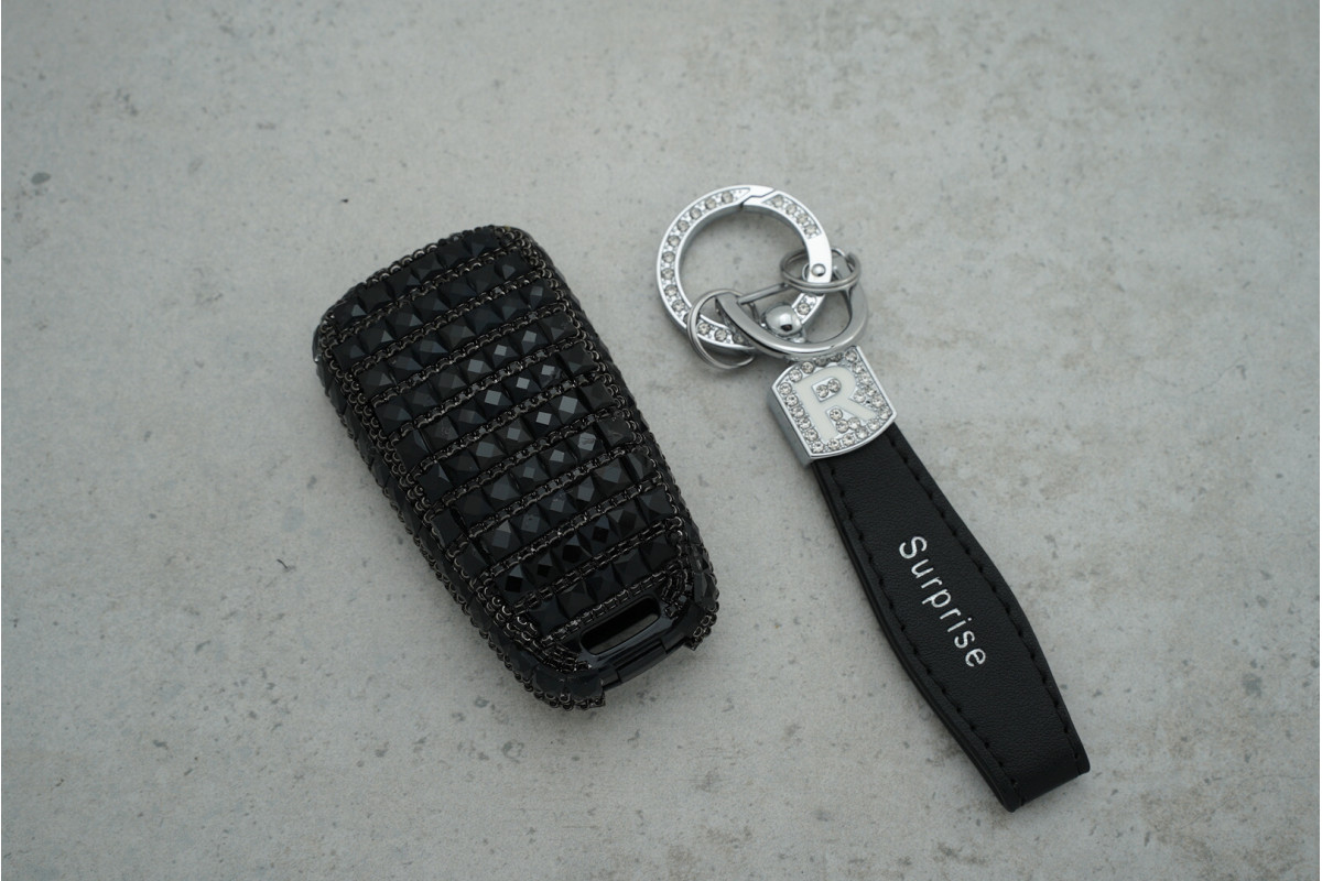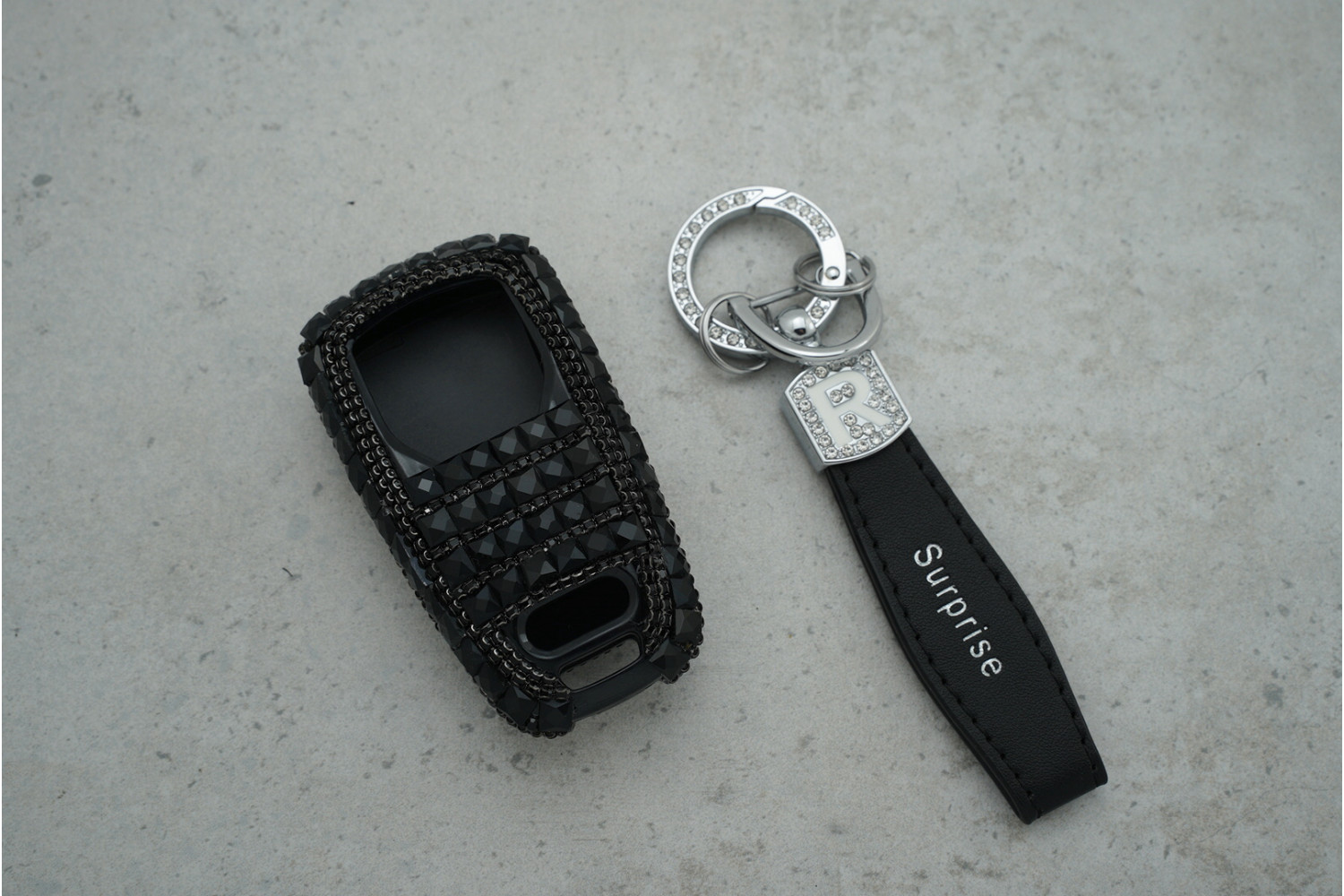 Чохол на автопульт Audi 3КН Q7, великі стрази, чорний №3 — елегантний і практичний аксесуар, який захищає ключ від подряпин, пилу та зносу, додаючи йому стильного вигляду.