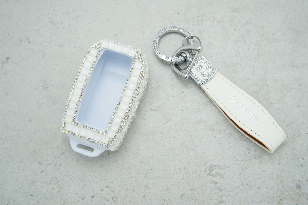 Чохол Toyota 3 КН білий із стразами забезпечує надійний захист ключа, стильний зовнішній вигляд і стає чудовим подарунком завдяки подарунковій коробці.