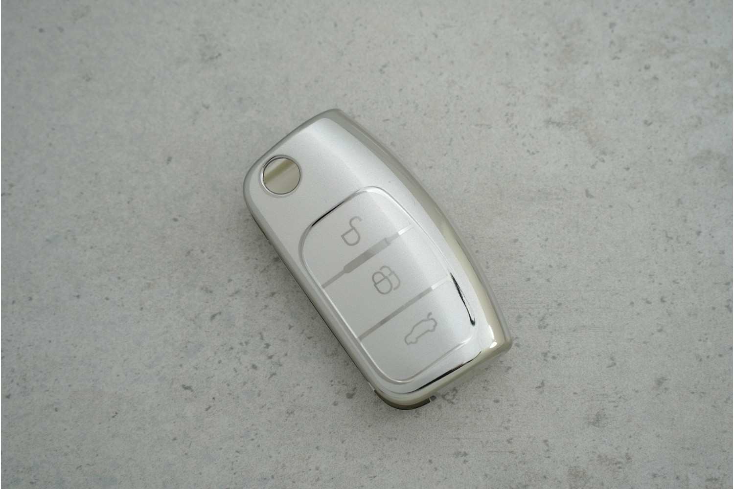 Чохол Ford 3 кнопки сірий-срібло з поліуретану — надійний та стильний захист для ключів Ford Fiesta та Focus, який поєднує міцність матеріалу і сучасний вигляд ключа.