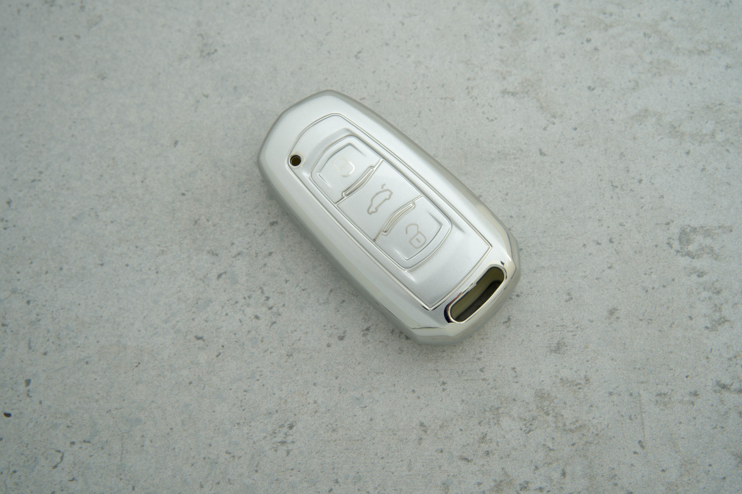 Чохол Geely 3 кнопки сірий-срібло з поліуретану для моделей Атлас, Боюсь, NL3 та EX7 — практичний та стильний захист ключа, який поєднує надійність матеріалу та сучасний дизайн.