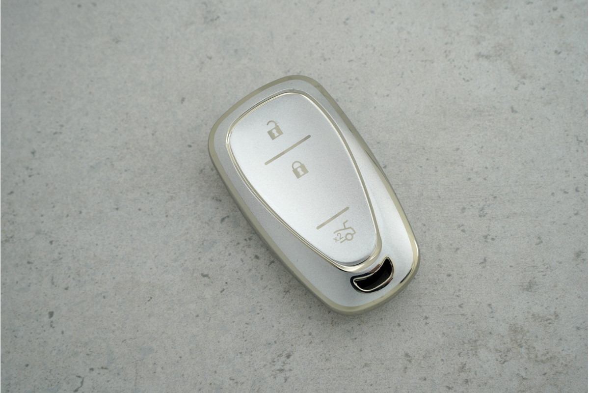 Чохол Chevrolet 3 кнопки у сірому срібному кольорі надійно захищає ключ і підкреслює його стиль у щоденному використанні.