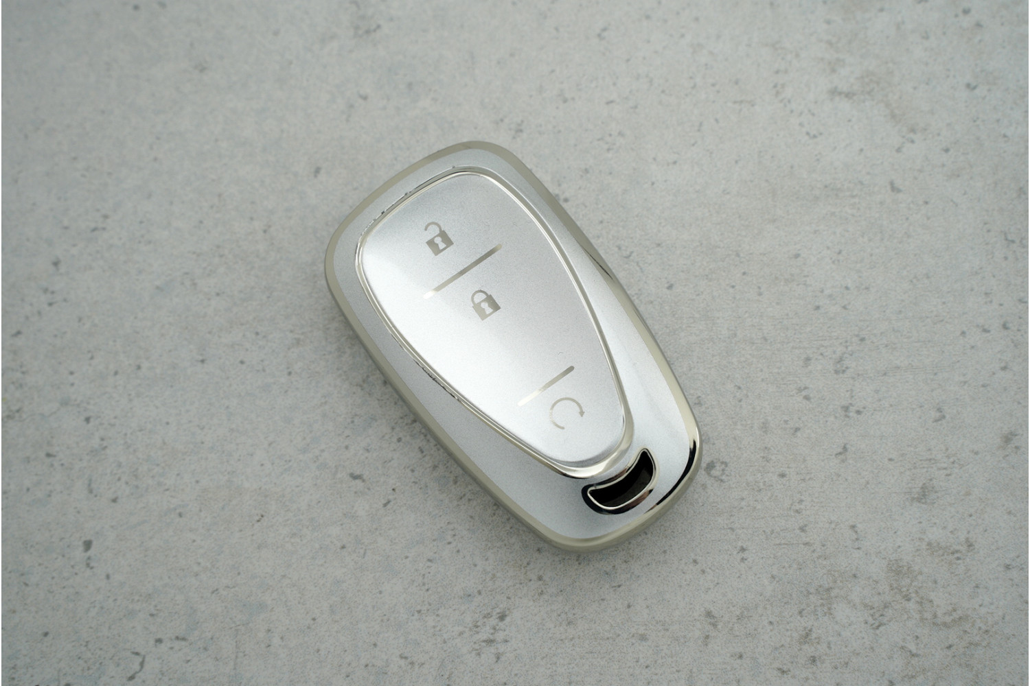 Чохол Chevrolet 3 кнопки сірий срібло з поліуретану — сучасний і практичний аксесуар для надійного захисту ключа автомобілів Chevrolet Cruze, Spark та Camaro від щоденного зносу.