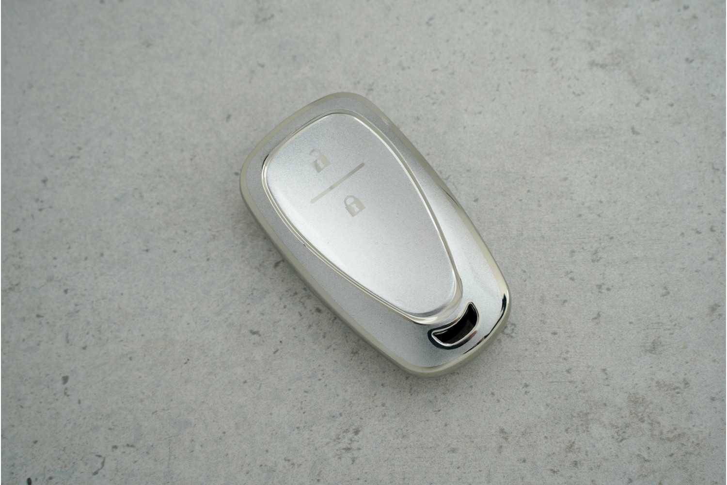 Чохол Chevrolet 2 кнопки сірий срібло з поліуретану — практичний аксесуар для захисту ключа Chevrolet Cruze та Malibu, який поєднує стриманий стиль і надійну фіксацію.