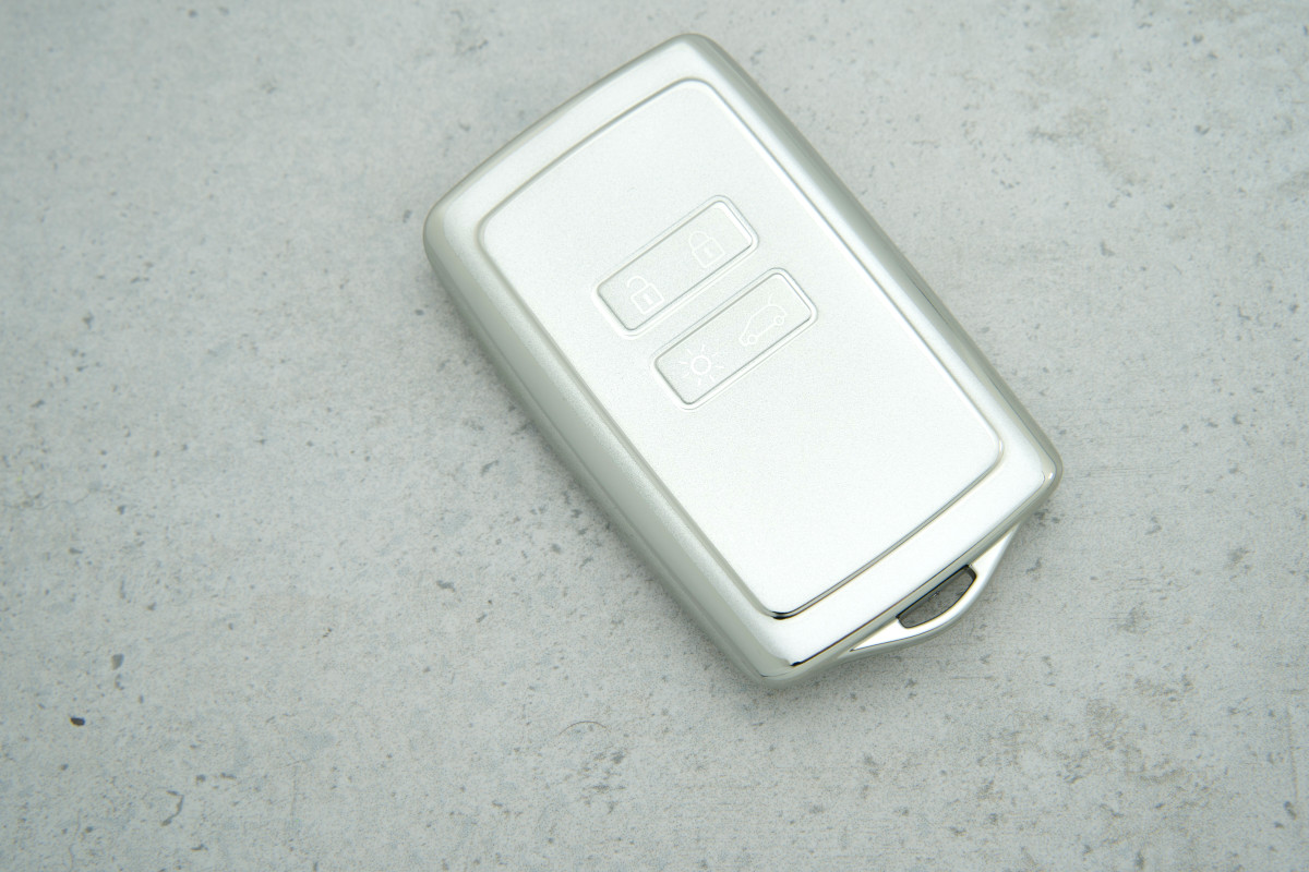 Чохол Renault 4 кнопки сірий-срібло з поліуретану — стильний та міцний захист для ключів Koleos, Korei, Binke і Espace, що поєднує практичність і сучасний дизайн.