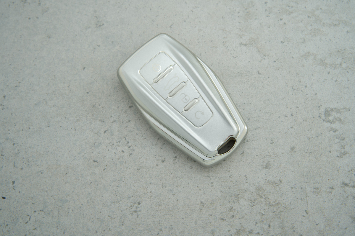 Чохол Geely 4 кнопки сірий-срібло забезпечує надійний захист ключа та підкреслює його стиль у щоденному використанні.