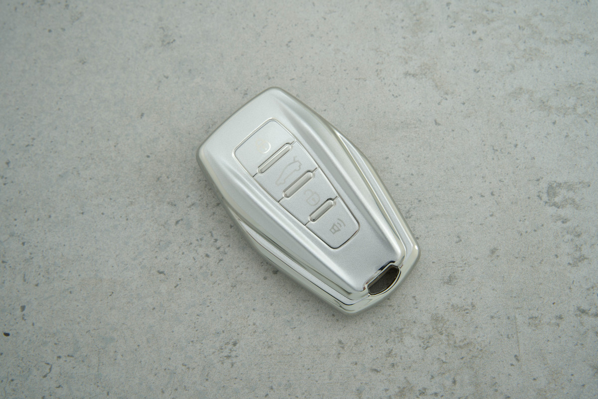 • Стильний дизайн: Поєднання сірого та сріблястого кольорів надає ключу преміального вигляду та гармонійно доповнює сучасний автомобіль.