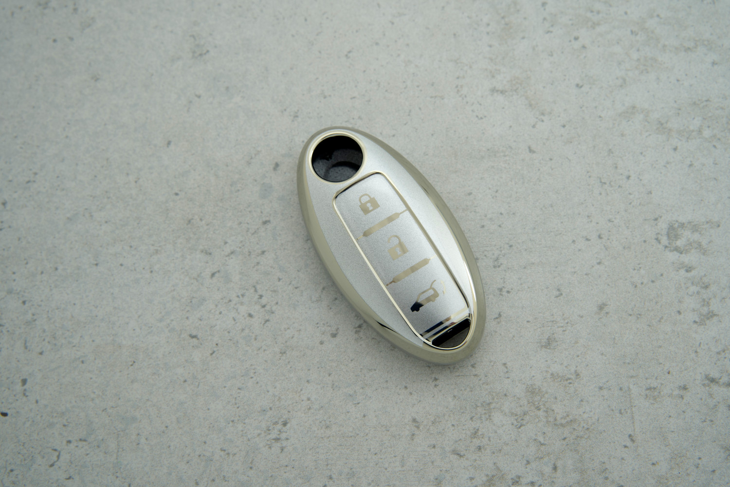 Чохол Nissan 3 кнопки сірий-срібло з поліуретану — практичний аксесуар для захисту ключа автомобілів Nissan, що поєднує сучасний вигляд і надійність у щоденному використанні. Ідеально підходить для моделей Qashqai, Juke та J10 Trail, зберігаючи функціональність і акуратний вигляд ключа.